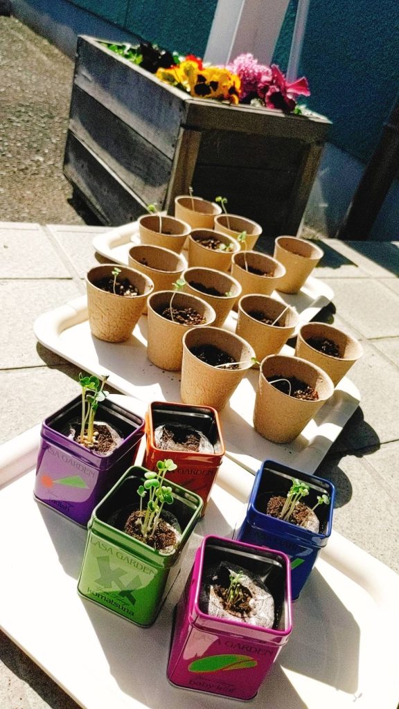 しおれてしまった苗もありましたが順調に育ってくれています。種も元気に芽を出してくれました!