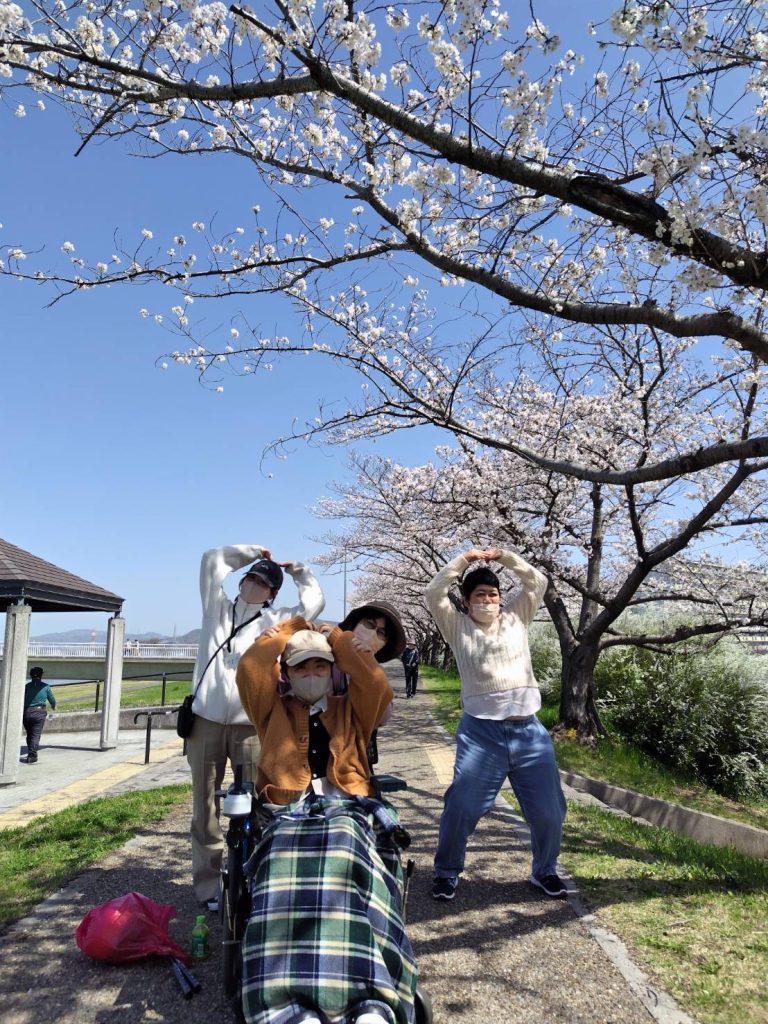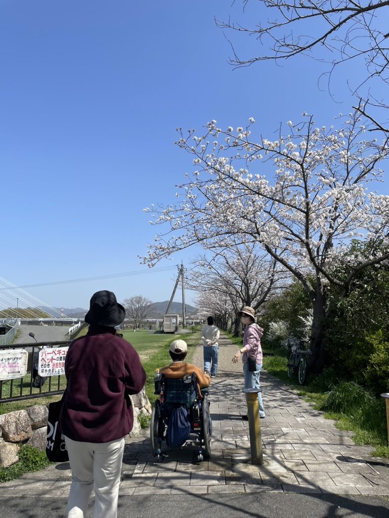 先日、施設の近くの河原に桜を見に行ってきました!!